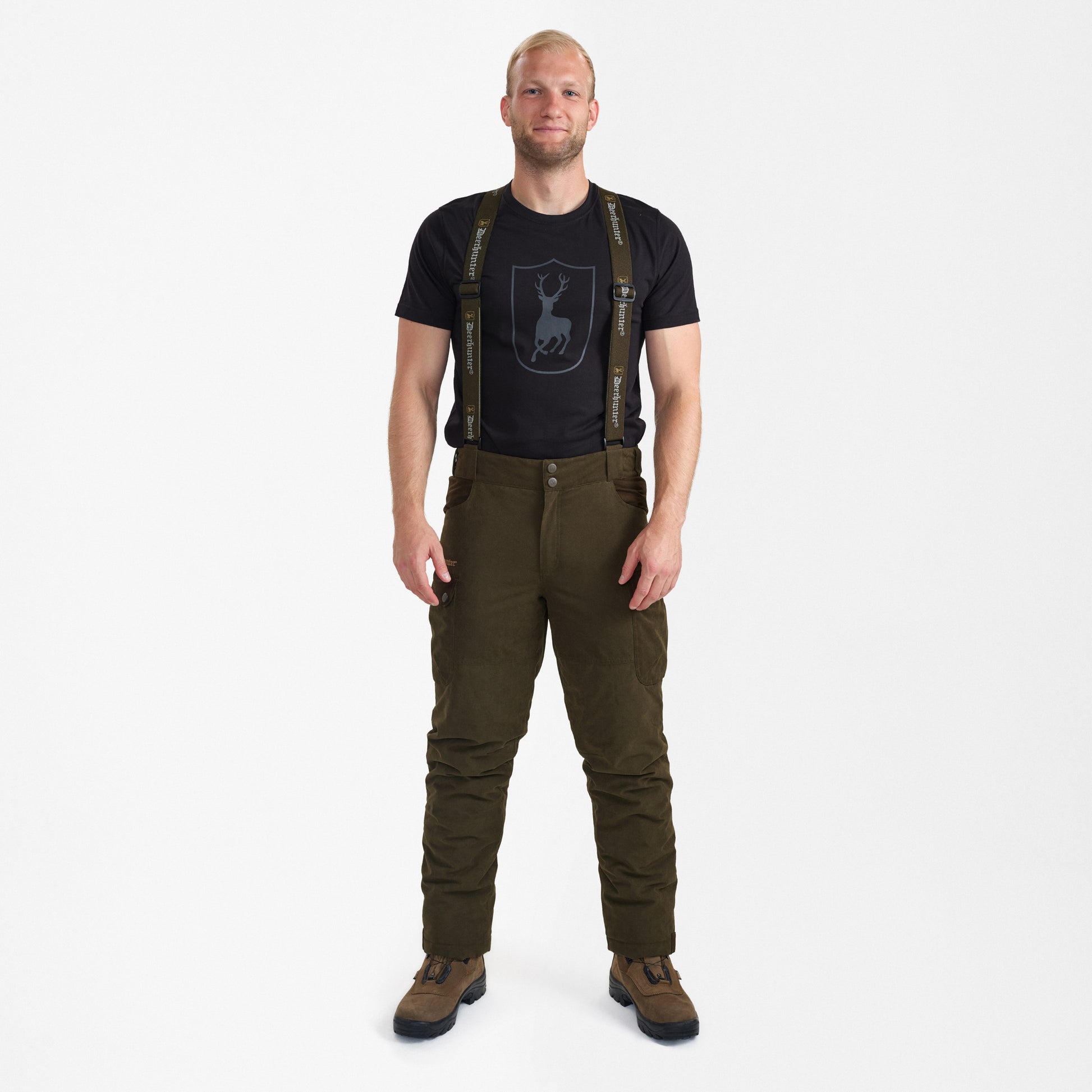 The windproof and waterproof Eagle Winter trousers offer a combination of insulated warmth and comfort with exceptional breathability, thanks to the Deer-Tex® Performance Shell membrane that ensures a comfortable inner climate for the hunter. A modern take on the classic hunting trouser with faux suede details, these trousers are packed with practical features to perform when in the great outdoors and protect you from harsh winter conditions.