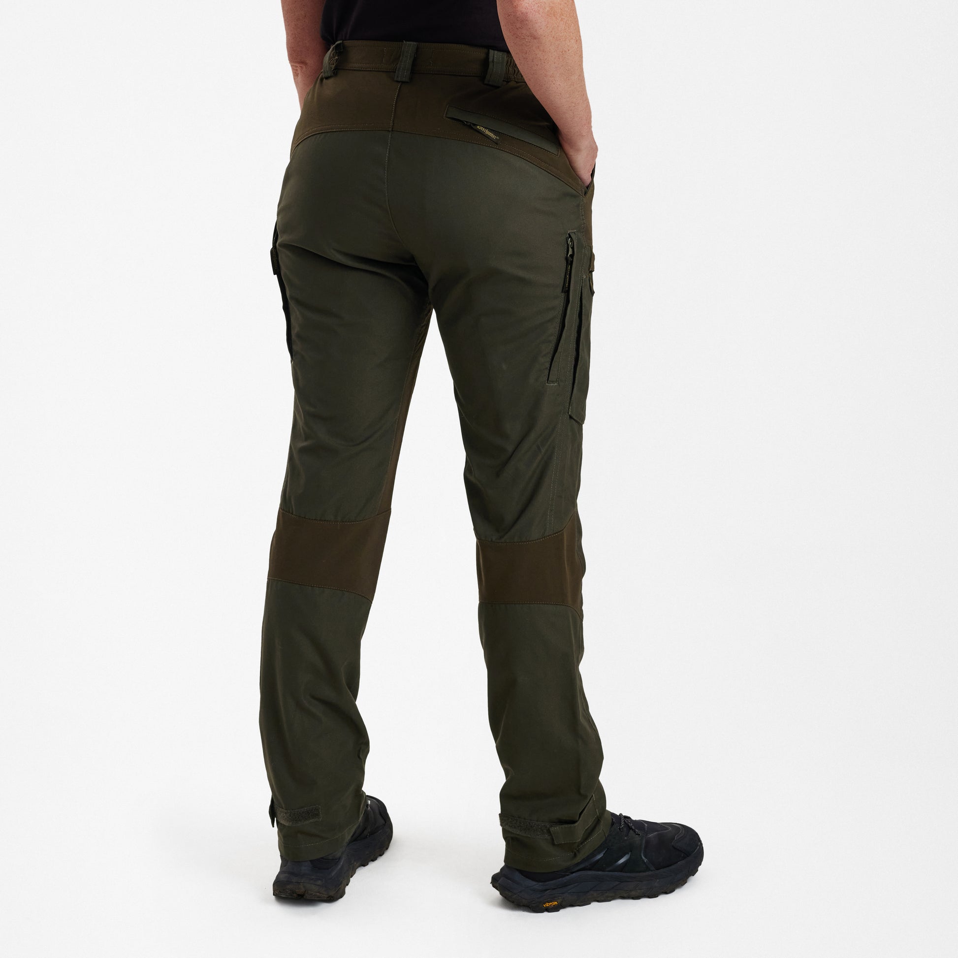 A technical trouser designed for serious adventure, the DEERHUNTER Lady Ann Trousers with Deer-Tex® membrane offer optimum protection from all weather conditions and pair perfectly with the rest of the Lady Ann collection. Waterproof, windproof and highly breathable, with added 4-way stretch for increased mobility, they are ideal for active hunts. There is ample storage for hunting essentials including a secure knife pocket. For a customised fit, they feature pre-shaped knees, an elasticated panel in the waist, ventilation zippers and adjustable ankle closures.