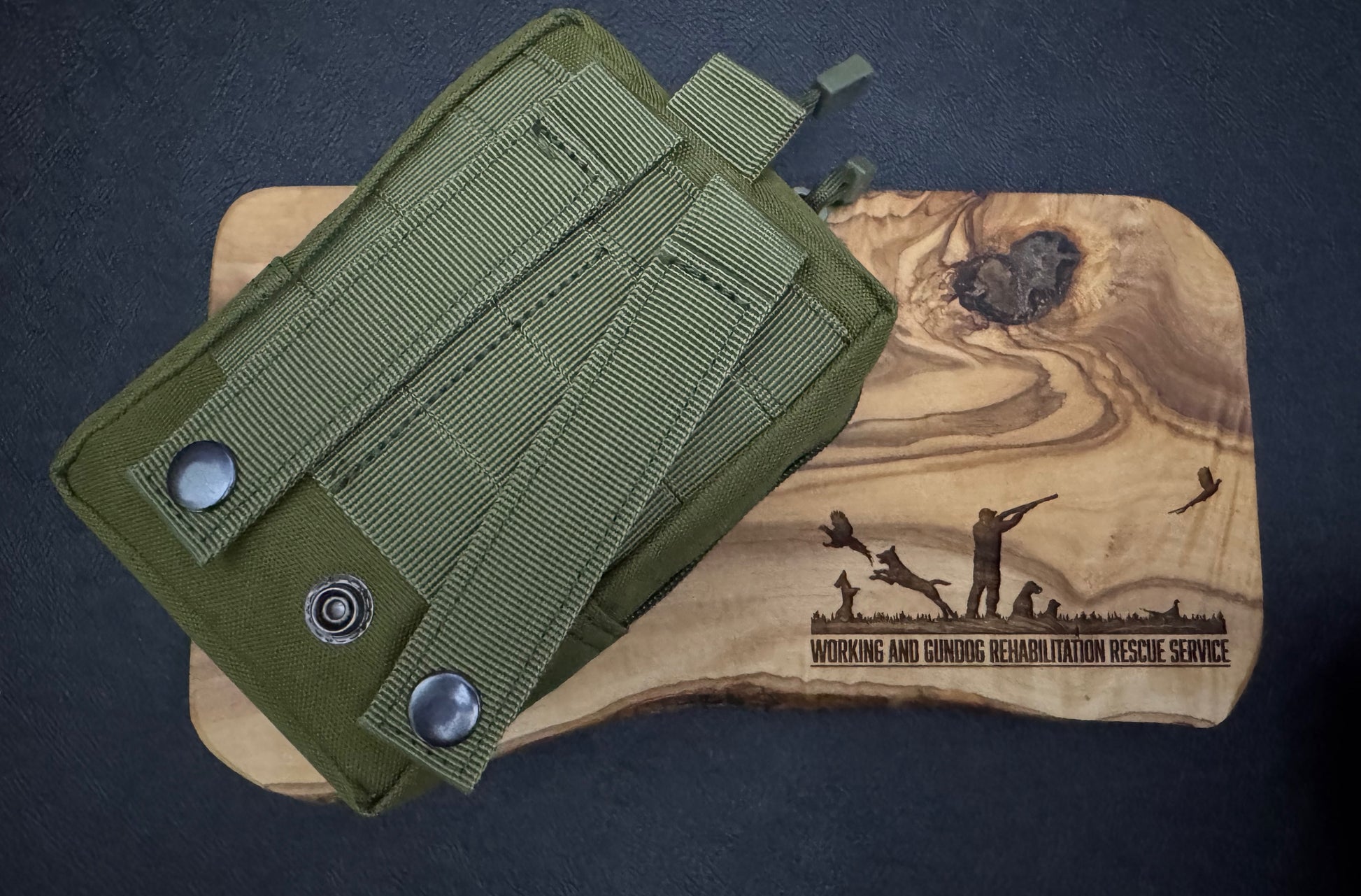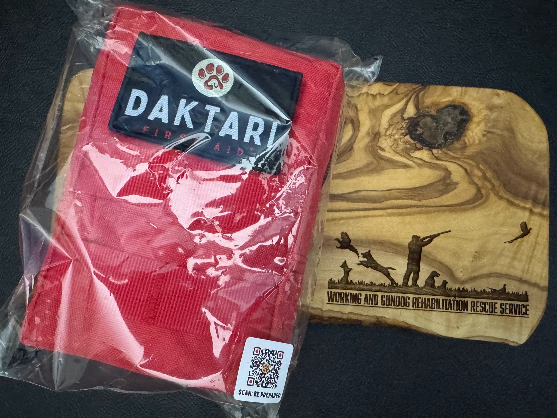 The contents include tweezers, scissors, gloves, wound dressing, gauze swabs, tick removers, alcohol wipes, saline solution, iodine wipes, poo bags, co flex bandage, padding bandage. All incased in a waterproof bag with a number of handy ways to have it with you on your walks, hunting days etc.